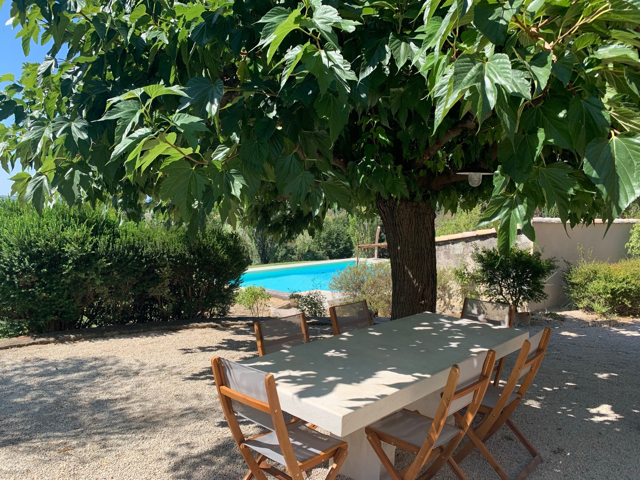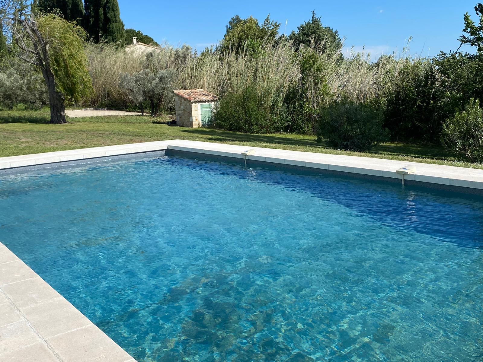 Profitez d’un vaste jardin arboré, d’une piscine privée rénovée en 2024, d’un terrain de pétanque et d’espaces de détente ombragés. Un cadre idéal pour des vacances reposantes en Provence.