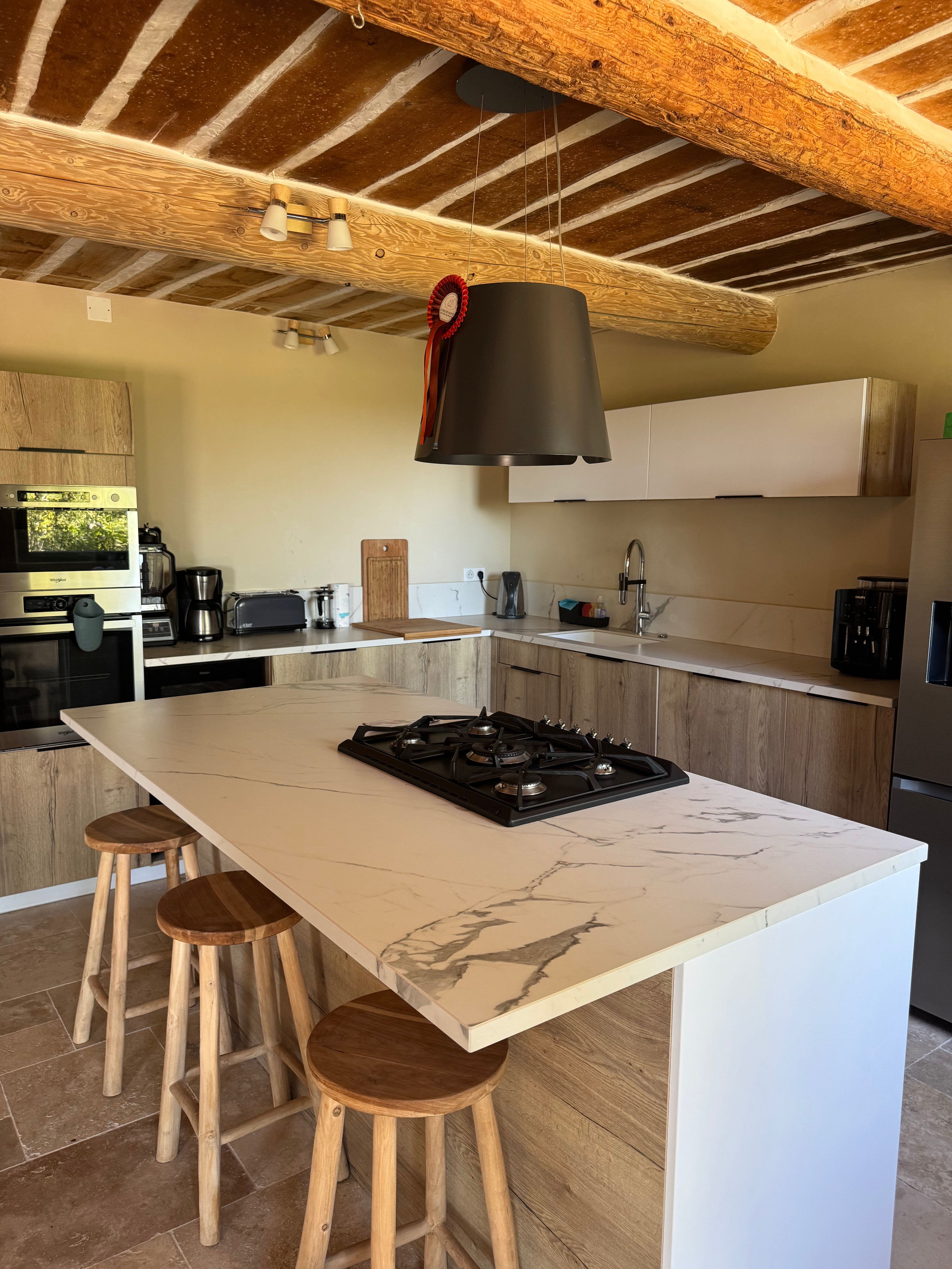 La maison propose une cuisine entièrement équipée, une salle à manger conviviale et un salon lumineux avec grand écran et connexion Wi-Fi disponible dans toute la maison.