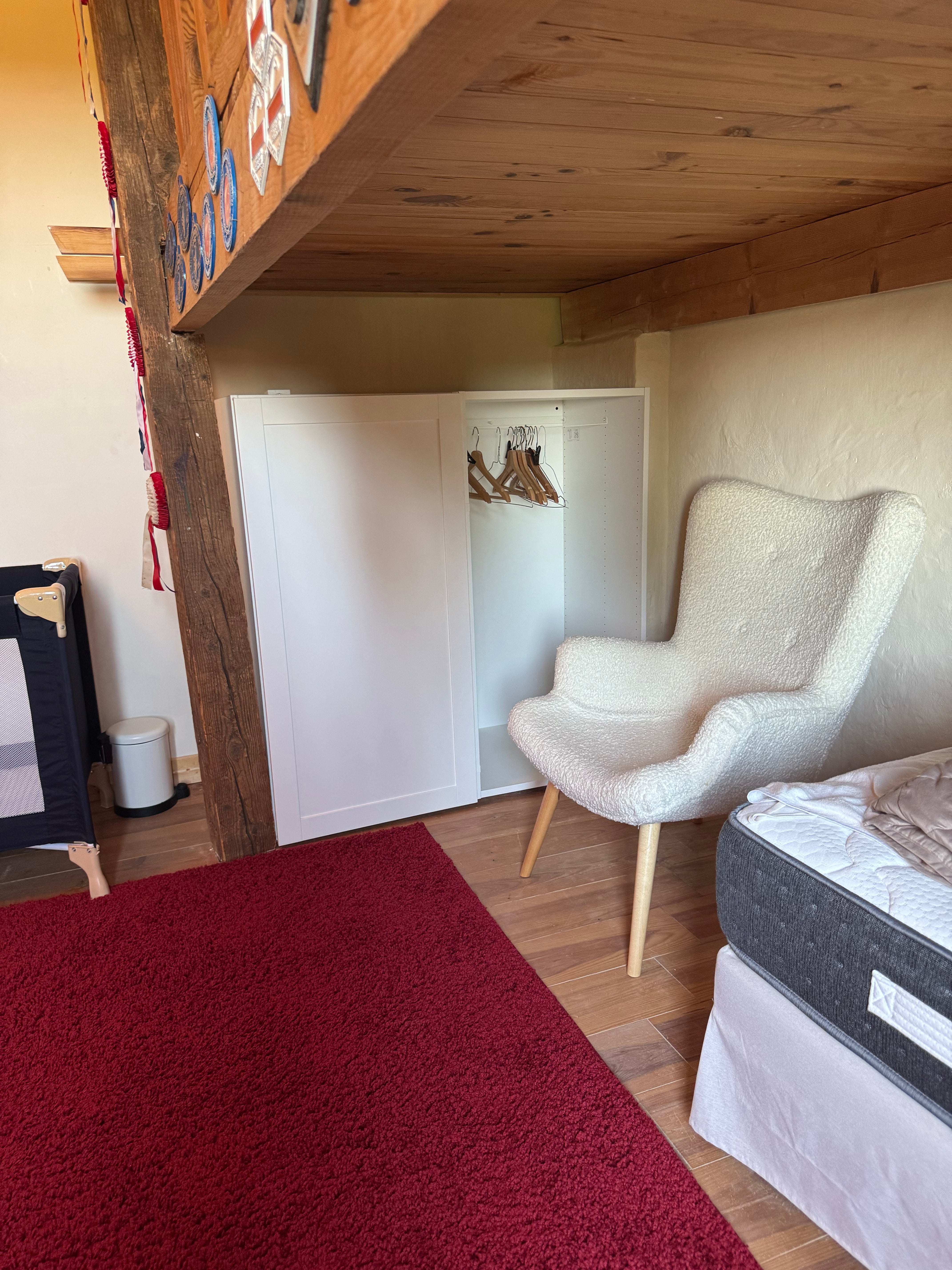 Cette chambre partage la salle de bain avec la chambre 1, elle possède un bureau et de nombreux rangements.